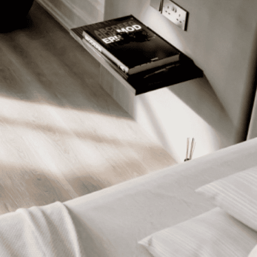 Тонка, але «невбивна»: Загальна товщина всього 4,5 мм робить цю підлогу ідеальним рішенням для ремонту, де кожен міліметр висоти має значення. При цьому вона залишається стабільною та міцною завдяки мінеральному ядру.