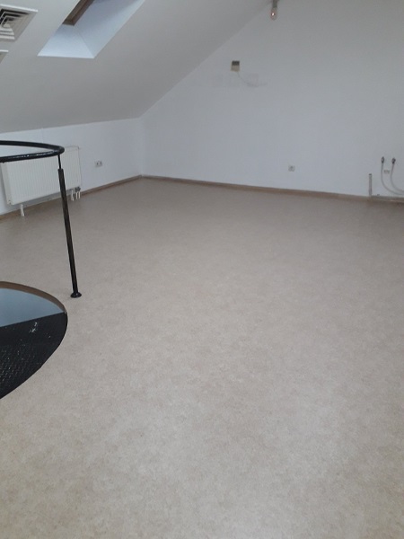 Запропонували замовнику гетерогенний лінолеум, комерційного класу використання. Покриття не містить шкідливих речовин, що підтверджує Сертифікат якості. Має всі пожежні протоколи. За рахунок захисного шару, за покриттям легко доглядати. Не боїться жіночих підборів, та роликових крісел. В результаті, замовник отримав очікуваний результат.
