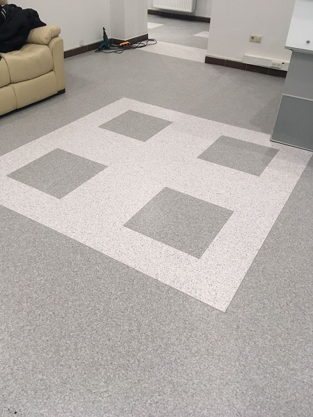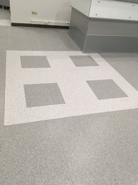 Запропонували замовнику гетерогенний лінолеум, комерційного класу використання. Покриття не містить шкідливих речовин, що підтверджує Сертифікат якості. Має всі пожежні протоколи. За рахунок захисного шару, за покриттям легко доглядати. Не боїться жіночих підборів, та роликових крісел. Було виконано геометричний дизайн. В результаті, замовник отримав очікуваний результат.