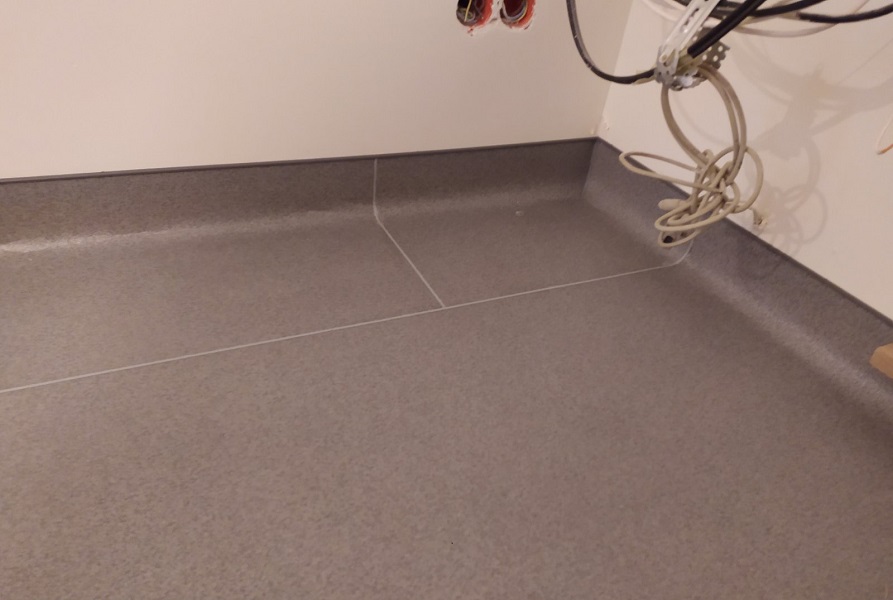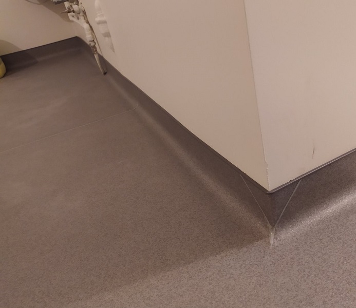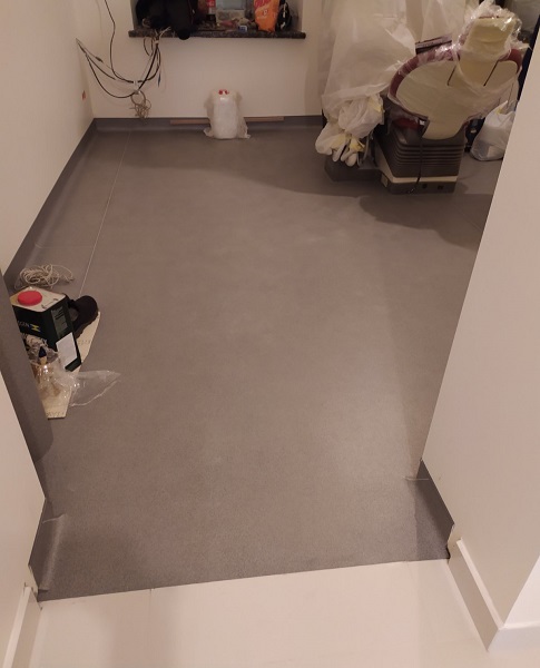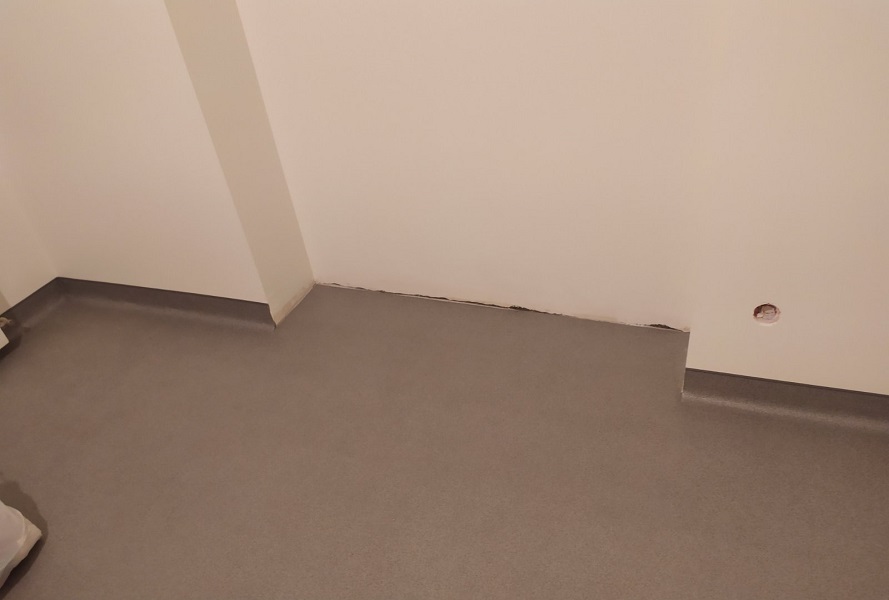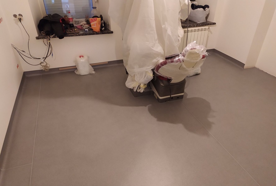Запропонували замовнику лінолеум, комерційного класу використання. Майстри зробили вивід покриття на стіну. Комерційне покриття не містить шкідливих речовин, що підтверджує Сертифікат якості. Має всі пожежні протоколи. За рахунок захисного шару, за покриттям легко доглядати. Не боїться жіночих підборів, та роликових крісел. В результаті, замовник отримав очікуваний результат.