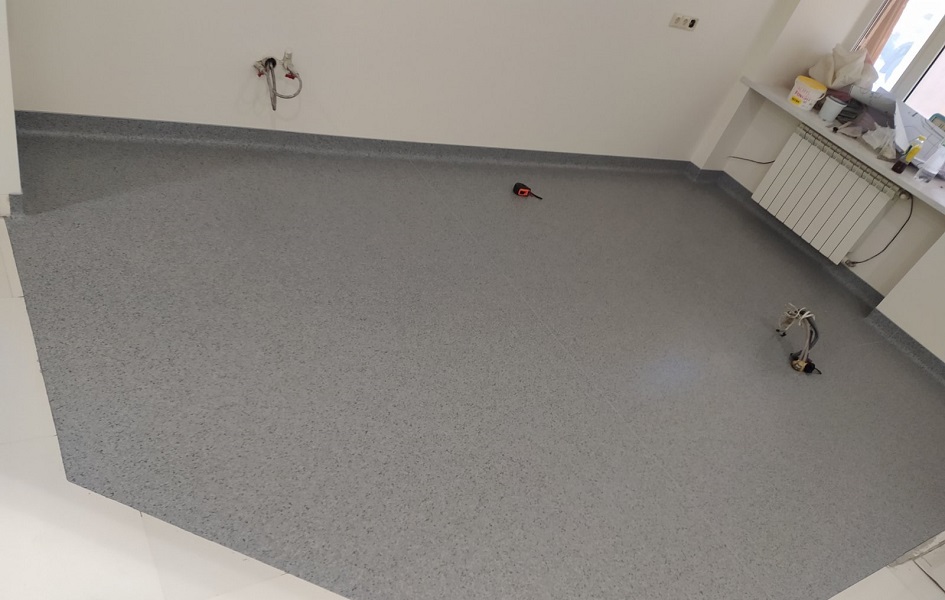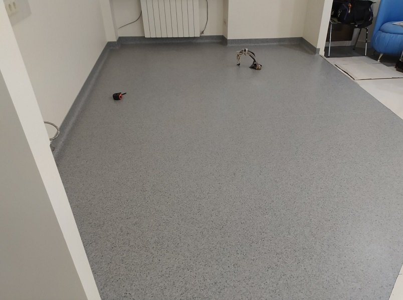 Запропонували замовнику гетерогенний лінолеум, комерційного класу використання. Покриття не містить шкідливих речовин, що підтверджує Сертифікат якості. Має всі пожежні протоколи. За рахунок захисного шару, за покриттям легко доглядати. Не боїться жіночих підборів, та роликових крісел. В результаті, замовник отримав очікуваний результат.